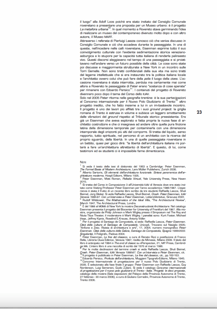 Undici. Non pensare più ai saggi di Eisenman su Giuseppe Terragni, o ai suoi Diagram Diaries, le sue X Houses, o al fondamentale testo “La fine del classico”.